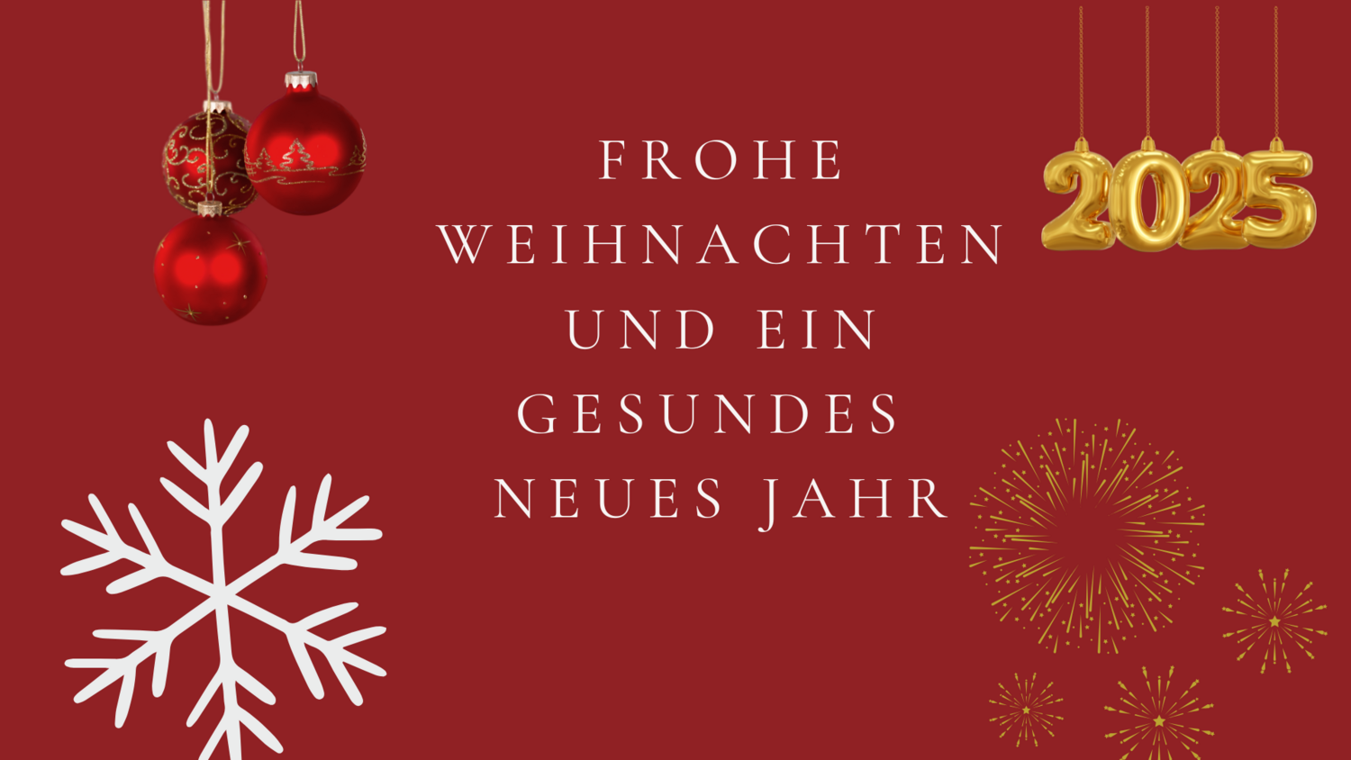 Für die kommenden Feiertage wünschen wir Ihnen und Ihren Familien eine besinnliche Weihnachtszeit und einen guten Start in ein gesundes, glückliches und erfolgreiches Jahr 2025.